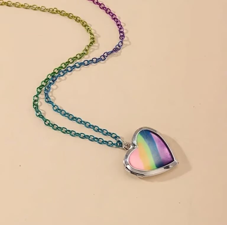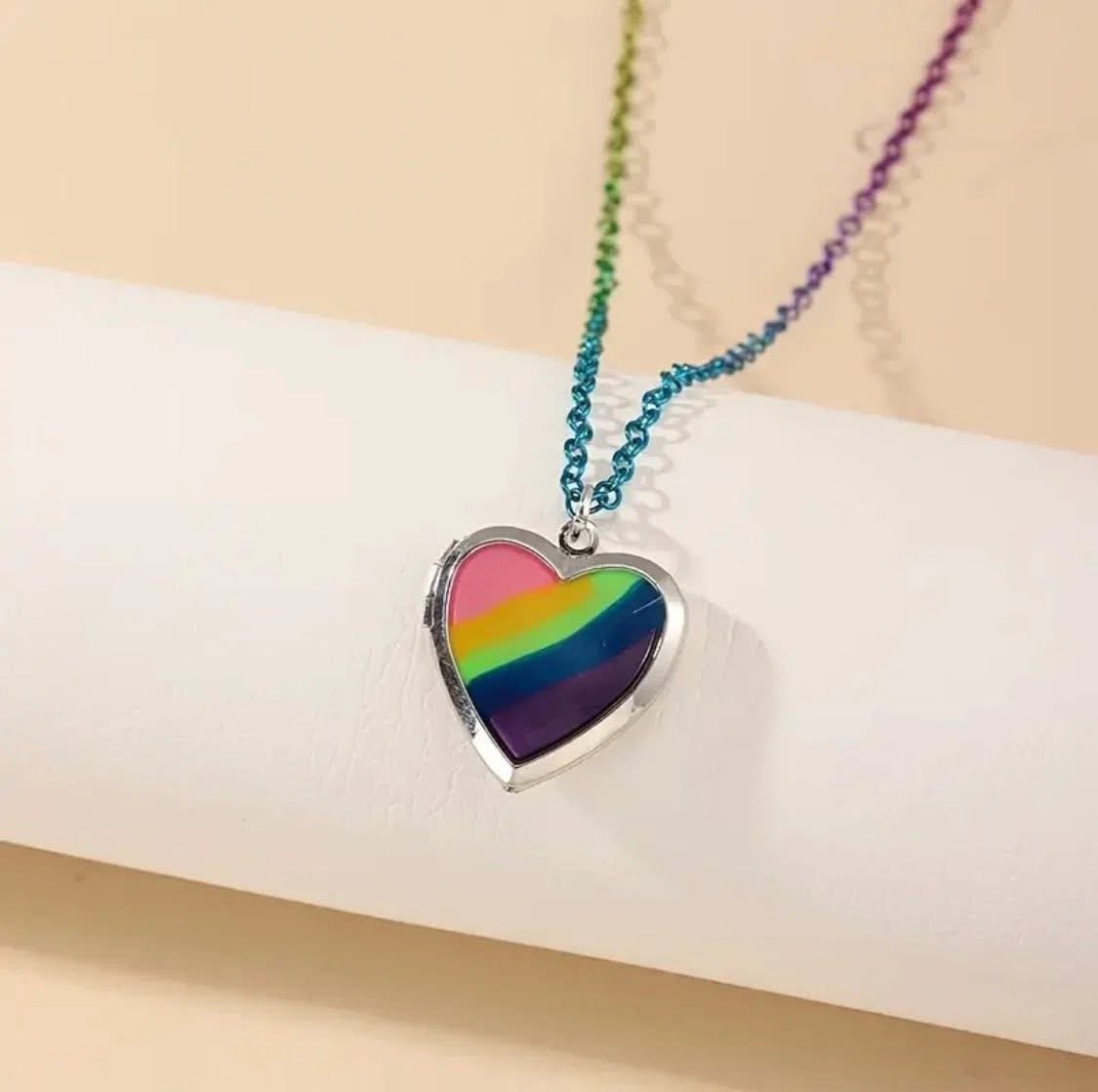 Rainbow Open Locket Heart Pendant Necklace
